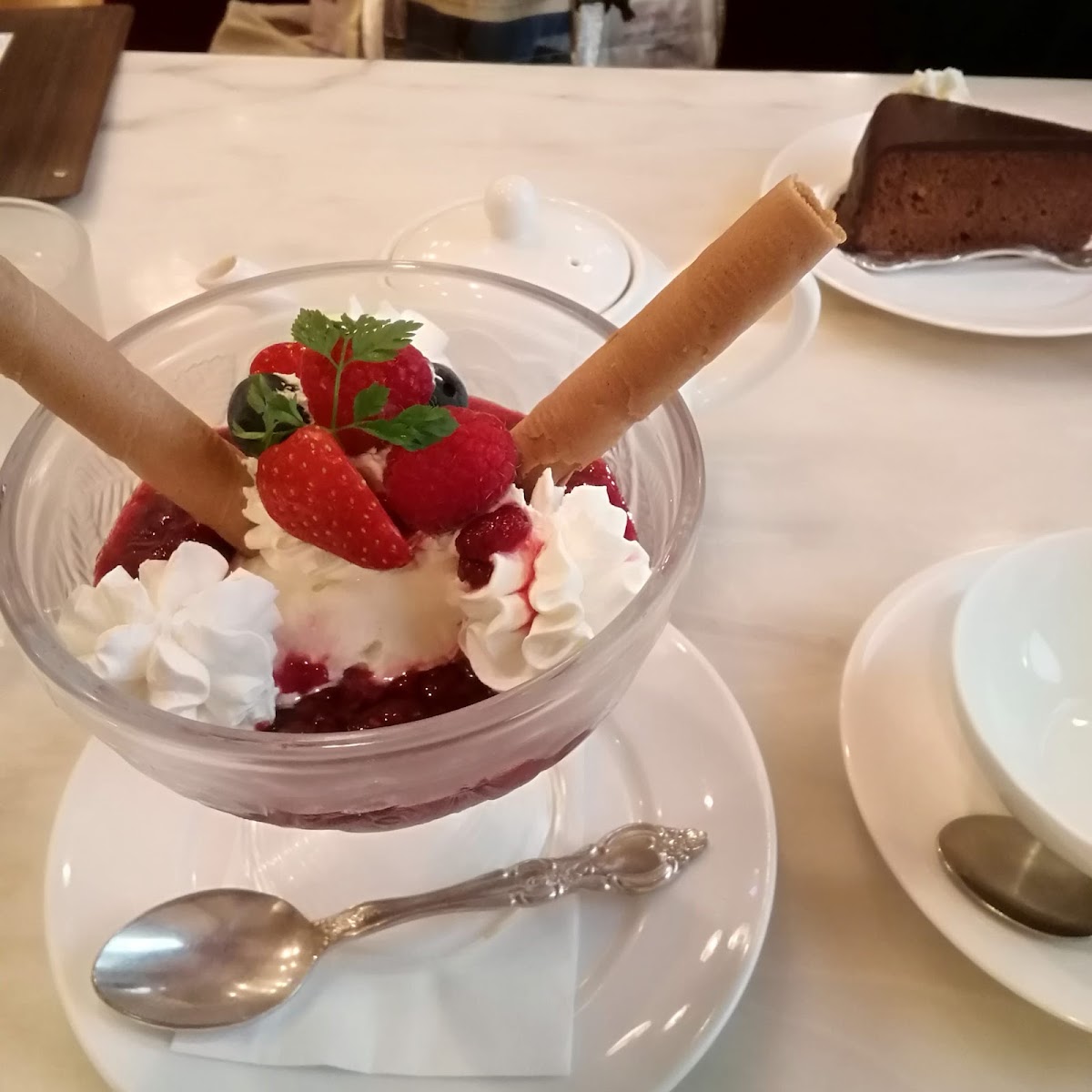 For those looking for a lighter option, the café also offers delightful parfaits. Patrons have praised the オレンジェンショコラー デパルフェ (Orange and Chocolate Parfait) which features a refreshing orange ice cream complemented perfectly by rich, high-quality chocolate—a harmonious blend that is refreshingly indulgent without being overly sweet.